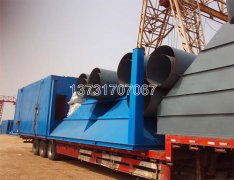 2017年6月22日山西焦化廠王經理定購的兩臺LFD-35覆膜扁布袋除塵器(立式)已發貨,除塵器與控制系統分開發運,現場按操作說明書按裝即可投入正常使用。我公司O設計的連桿傳動部分,傳動合理、準確、可靠、靈活,可有效帶動奇偶扁布袋之間發生異步對拍振動 -