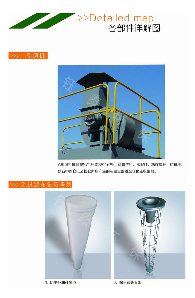 YT24倉頂除塵器主要應用于筒倉頂部進行收塵處理,是根據水泥、粉煤灰、石灰等各種粉狀物質的粒徑,設計其除塵器濾袋的O通過直徑并考慮附著力作用給濾袋孔徑的影響,使之完全可以滿足各類粉狀物質的過濾要求。