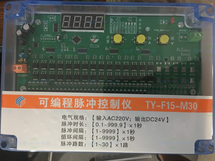 TY離線脈沖控制儀 是袋式除塵清灰系統的主要控制裝置,離線脈沖控制儀的輸出24V信號用于控制電磁脈沖閥對濾袋進行循環清灰,以_除塵器的處理能力和收塵效率。泊頭市康越環保有限公司生產各類脈沖控制儀,運用SMT技術研發各類新型產品,以求提供給廣大終端客戶